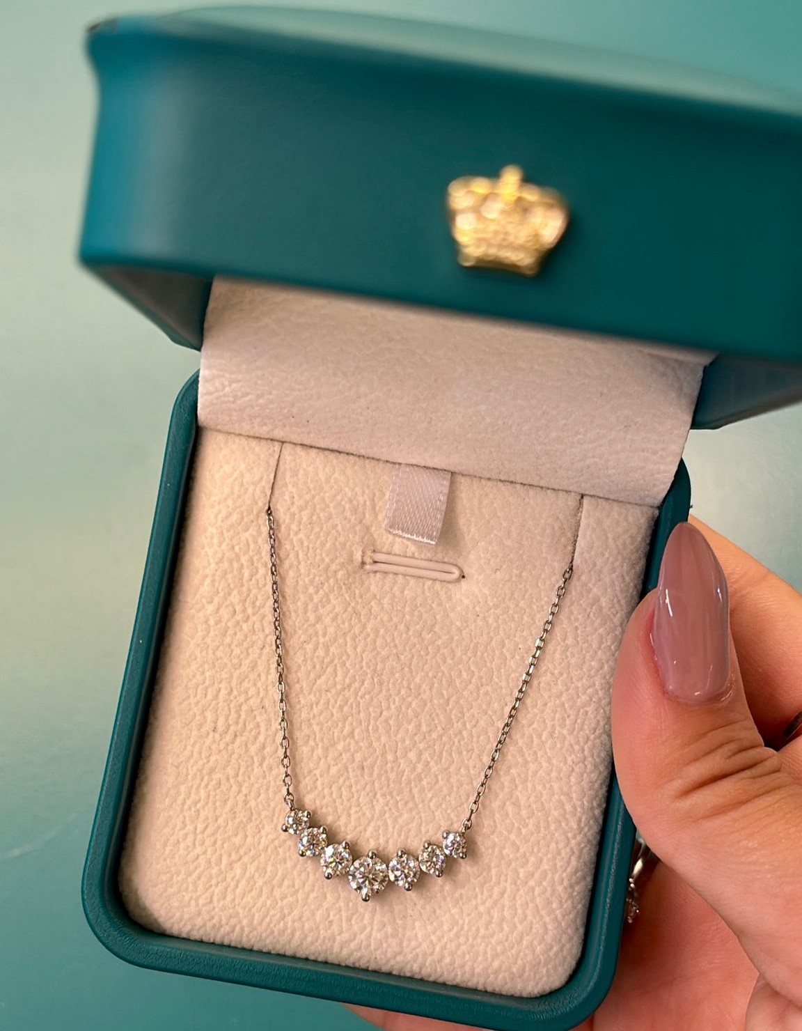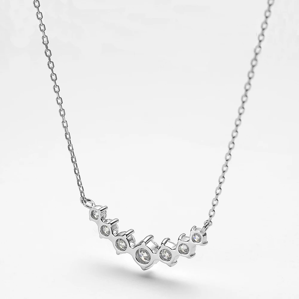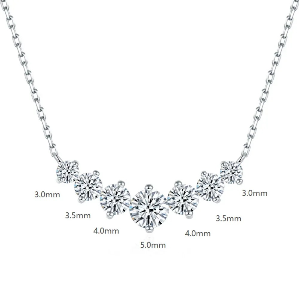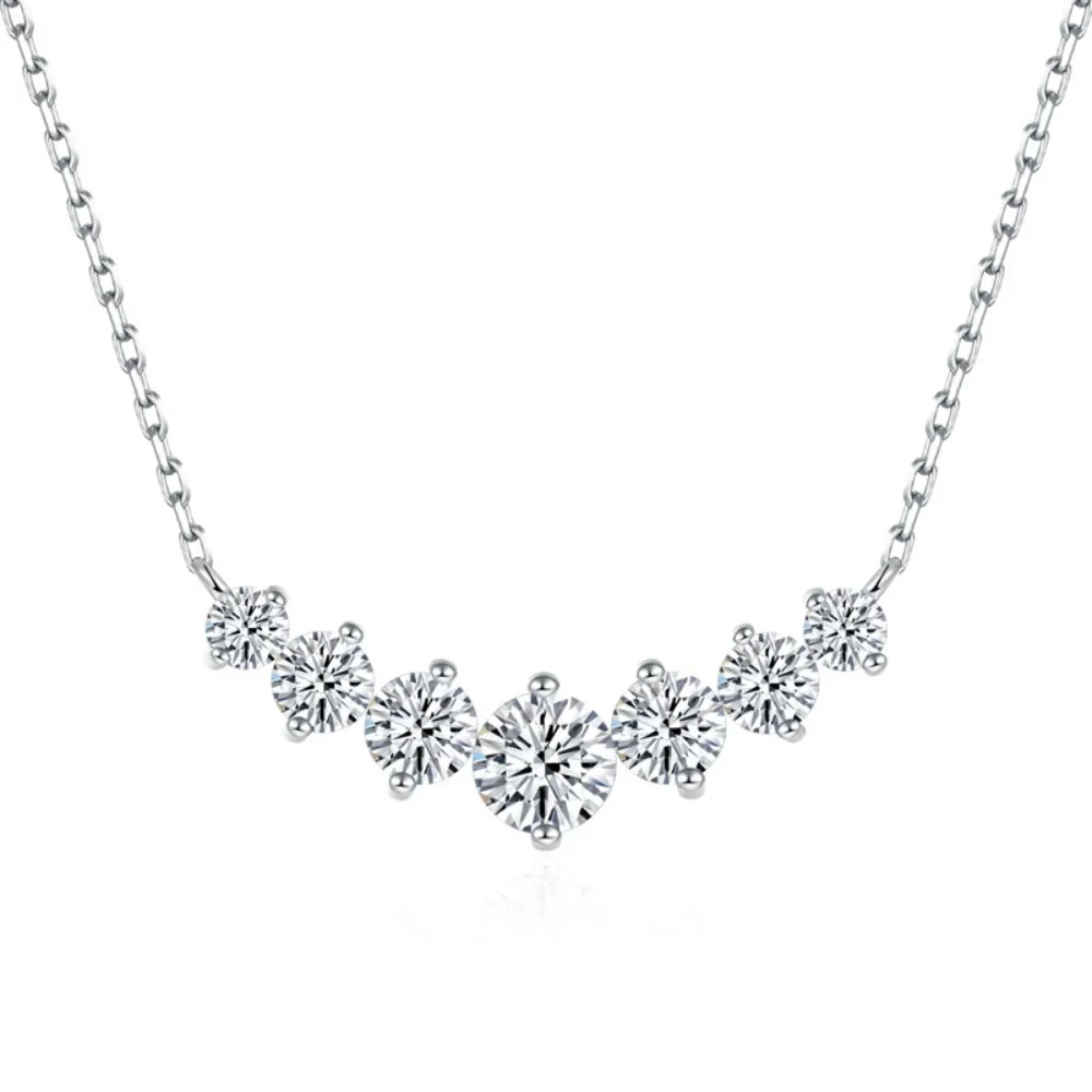 שרשרת קלאסית ומרשימה עם שורת אבני מואסונייט זוהרות בגדלים משתנים, המשתלבות בקו עדין ומושלם סביב הצוואר. תכשיט שמאיר כל הופעה בנשיות ואצילות.